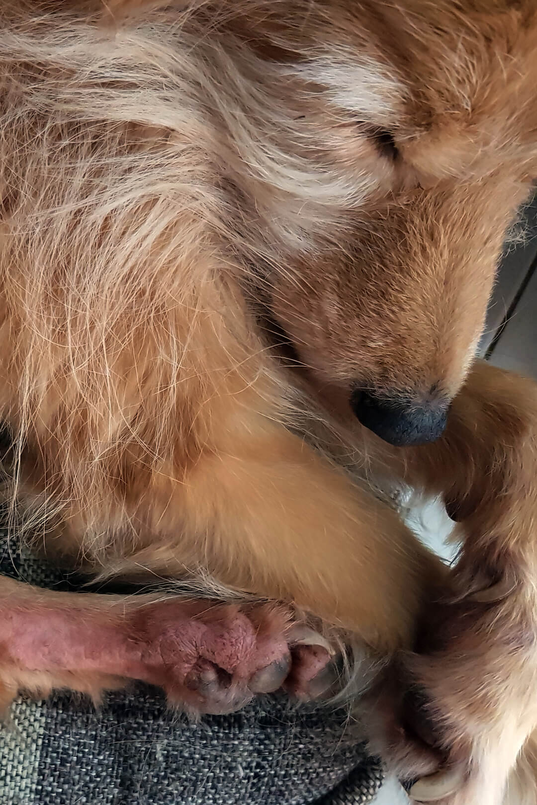 Take a look at your dog’s feet — are they reddish and discolored? Do they constantly chew on them?