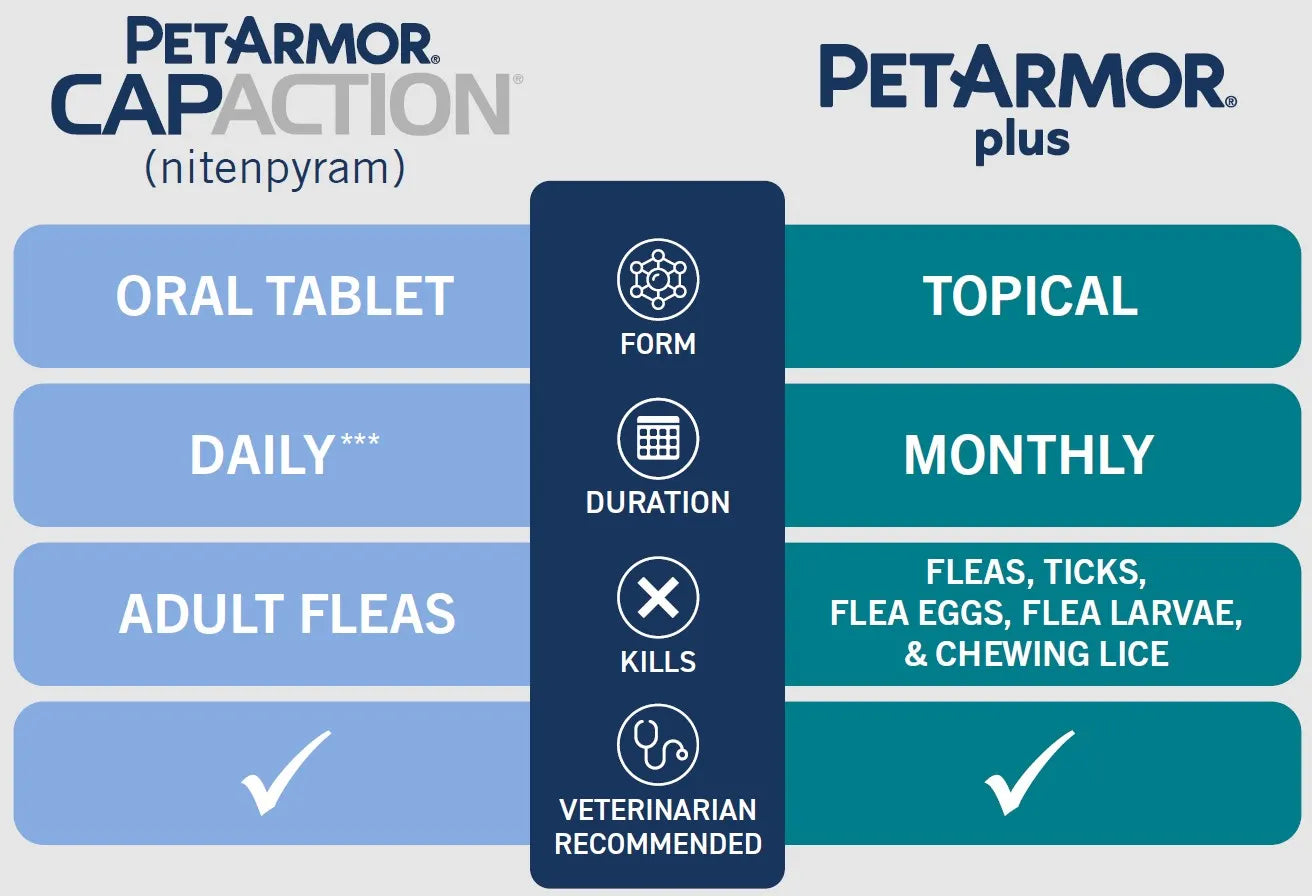 CAPACTION® (nitenpyram) is a fast-acting oral flea treatment that kills adult fleas. With one easy oral tablet, CAPACTION® begins killing adult fleas on pets within 30 minutes and is 90% effective against adult fleas within 4 hours for dogs and 6 hours for cats.