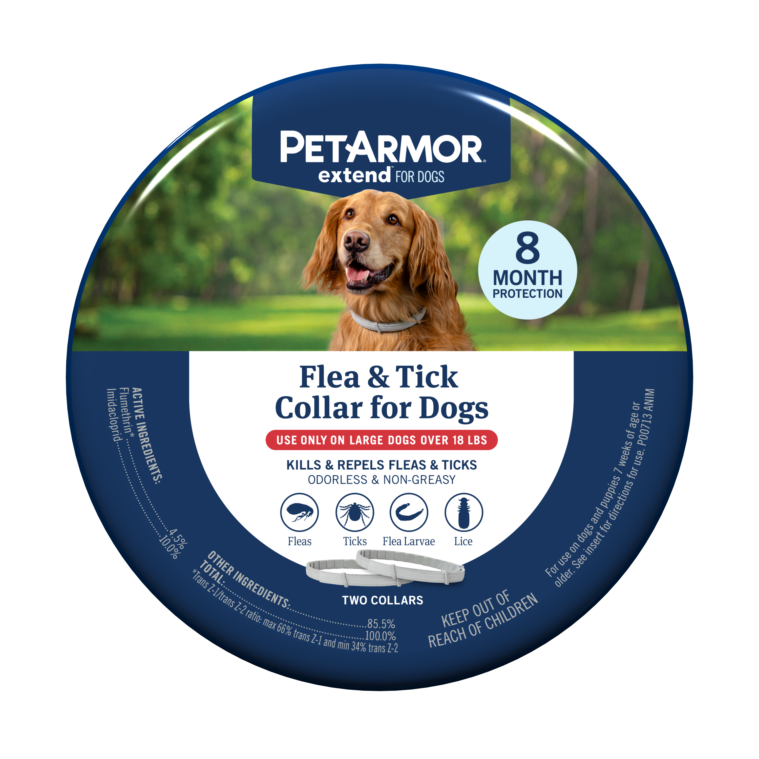 Join the millions who have been protecting their pets with PetArmor® for over 15 years! The PetArmor® Extend™ Collar for dogs and cats delivers up to eight months of continuous protection by killing and repelling fleas, ticks, and lice, no prescription needed. It also targets flea larvae, effectively breaking the flea life cycle and preventing the pests from coming back. The PetArmor® Extend™ formula, with vet-recommended active ingredients, is completely odorless and non-greasy, leaving no chemical smell or residue behind. With water-resistant protection that lasts through every season, you can have peace of mind knowing your dog or cat is covered.
